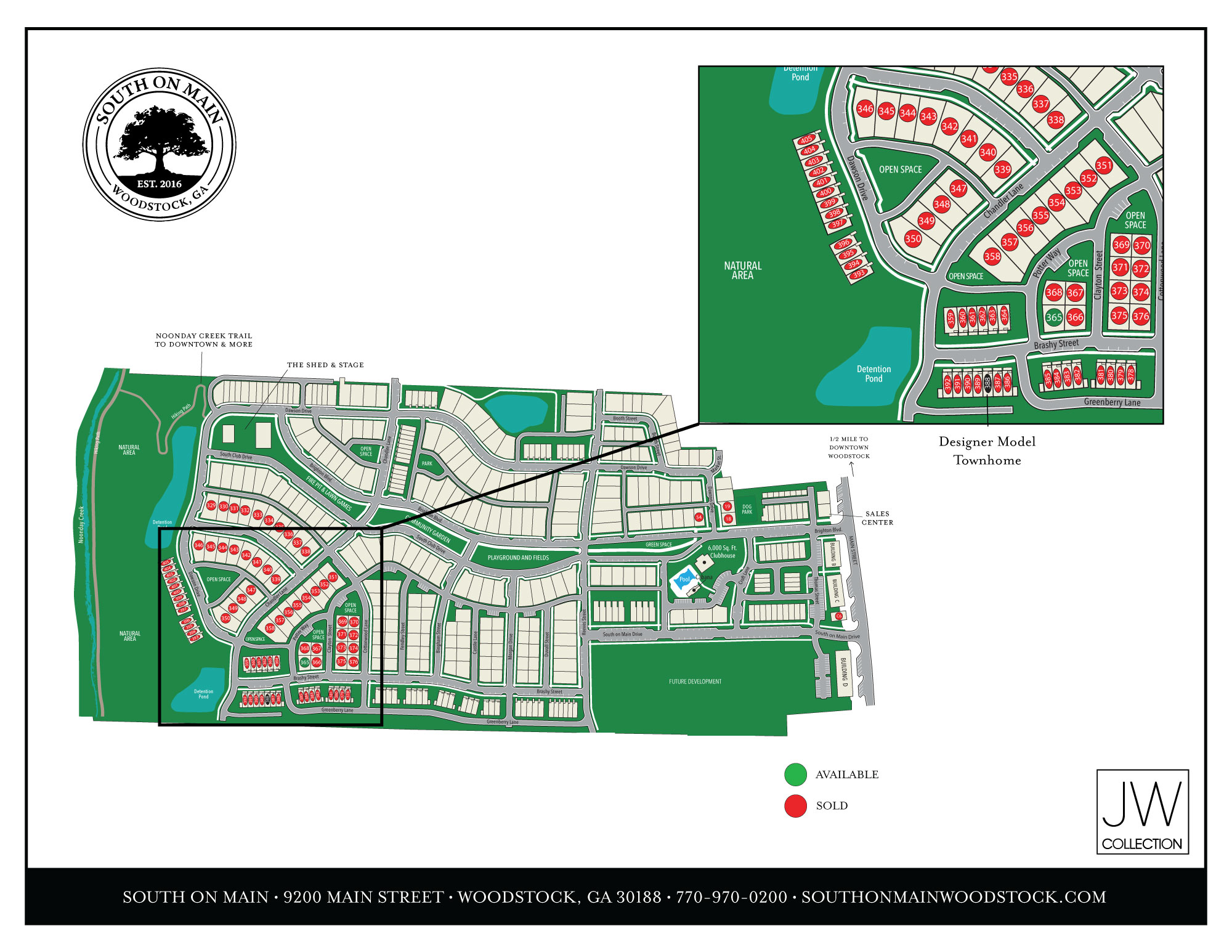 Experience living local at its best at South on Main with all the activities of vibrant Downtown Woodstock just a sidewalk or trail away. Homeowners at South on Main will enjoy their proximity to: